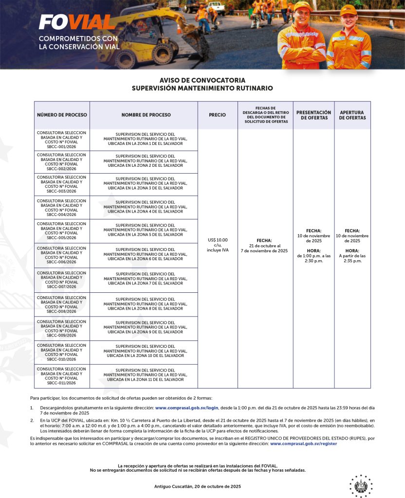Convocatoria v铆as no pavimentadas